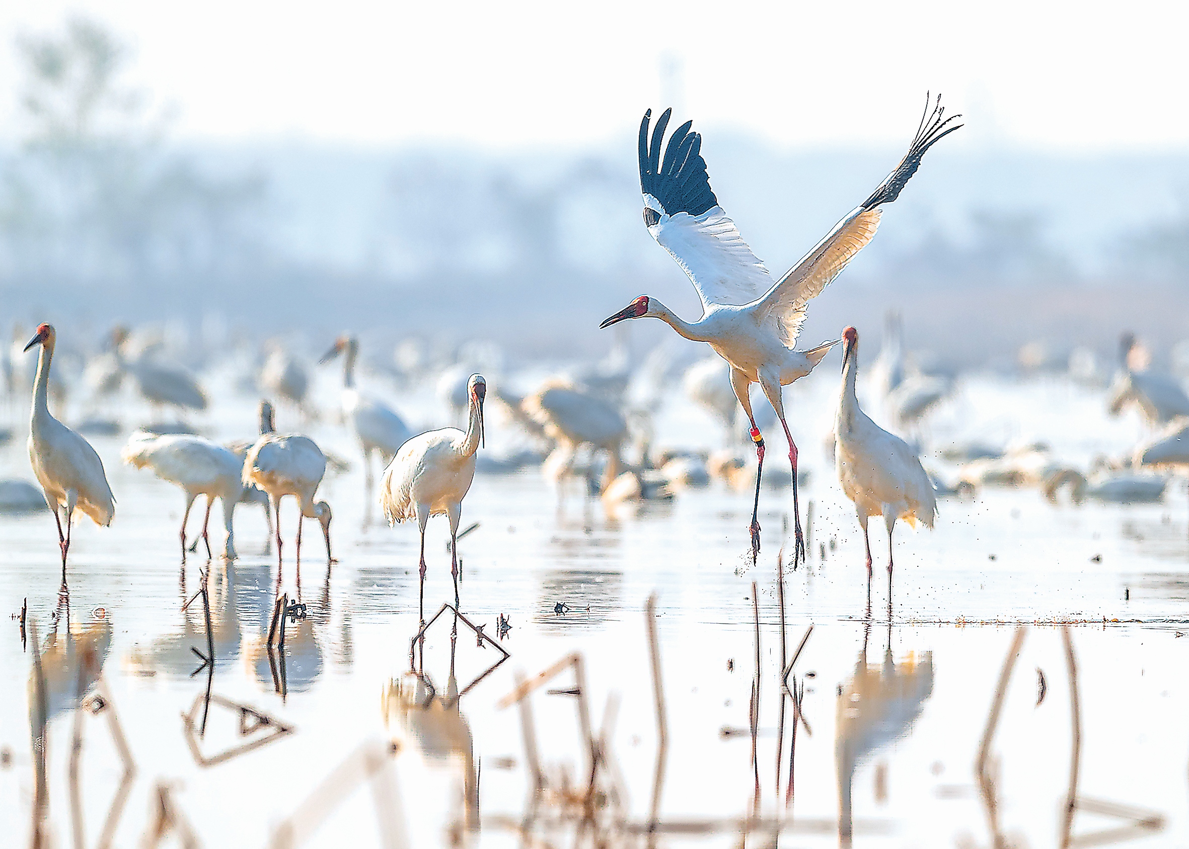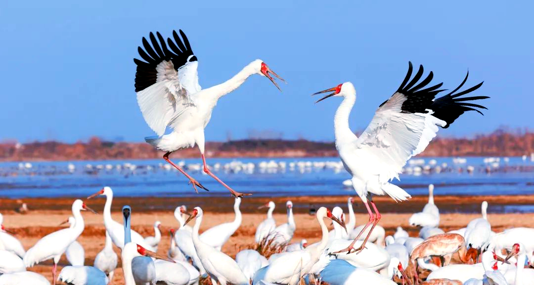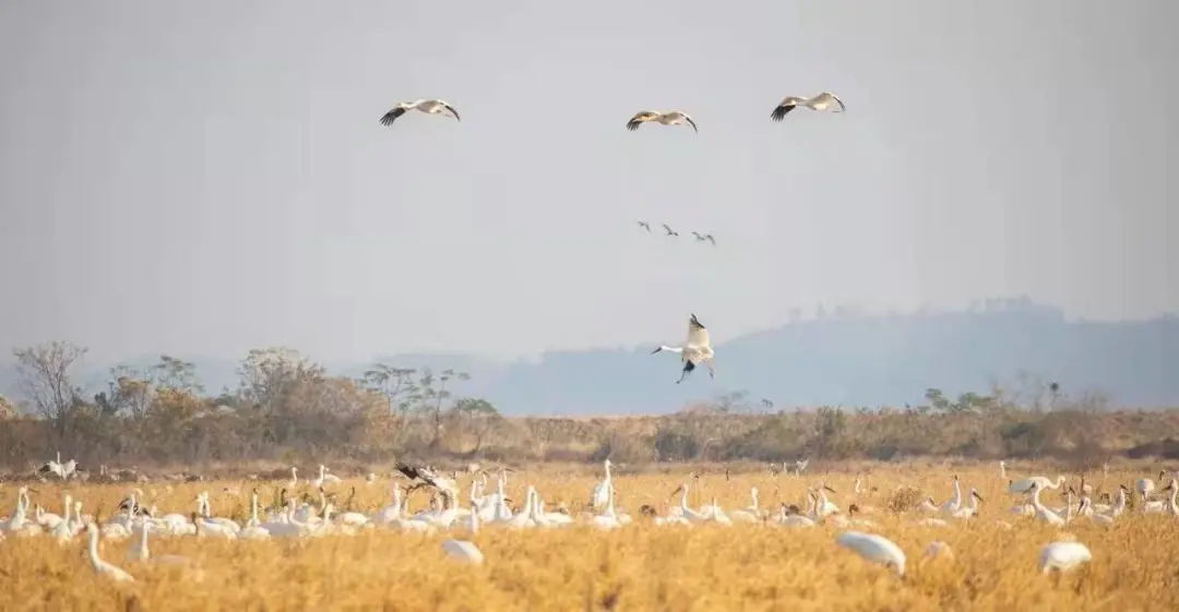 鄱阳湖是中国最大淡水湖、全国首批国际重要湿地,也是亚洲最大的候鸟栖息地,被誉为“珍禽世界”“候鸟天堂”“白鹤王国”。据统计,每年到鄱阳湖越冬的候鸟多达60万至80万只,全世界90%左右的白鹤、80%以上的东方白鹳、70%以上的白枕鹤都会不远万里飞至鄱阳湖越冬栖息。