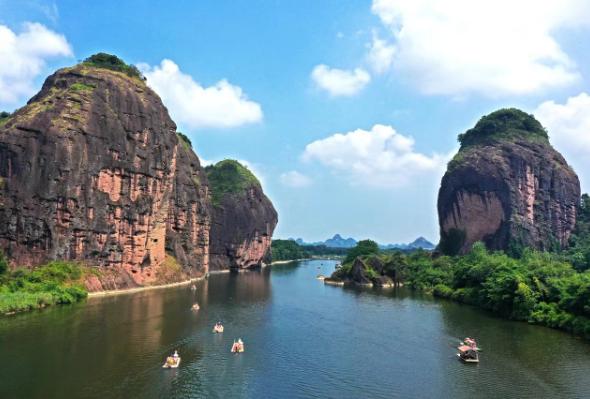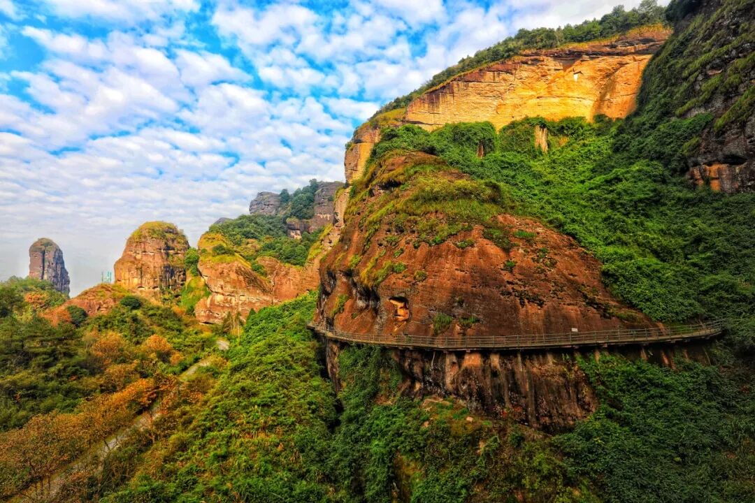 沿途保留了原始自然风光,如茂密树林、古老石板路和丹霞地貌景观,让游客能体验徐霞客笔下“雄、奇、险、秀、幽”的山水意境。