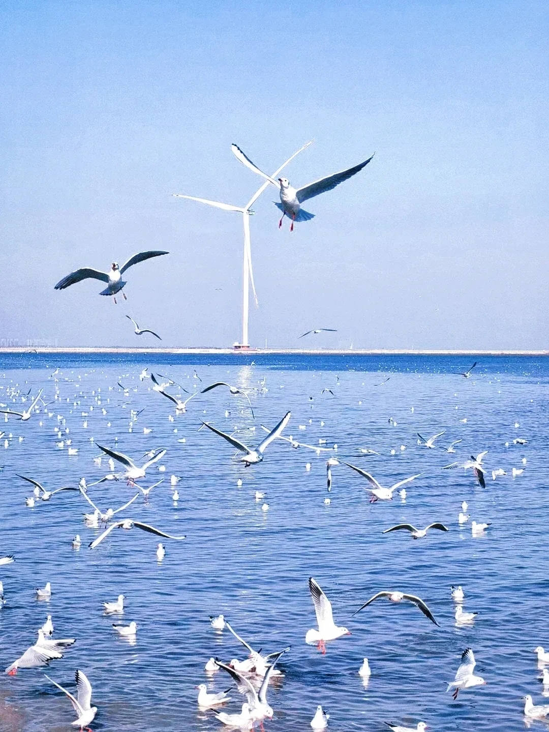 天津东疆港的新港九号路简直是一处人间仙境。这条路笔直地伸向蔚蓝的海岸,海风中,成排的大风车缓缓旋转。抬头望去,是那澄澈的蓝天;低头则能欣赏到粼粼的波光。在这里,随手一拍都能成为自带滤镜的绝美大片。无论是欣赏大海、捕捉美好瞬间,还是与海鸥共度欢乐时光,这里都能满足你对冬日浪漫的所有期待。