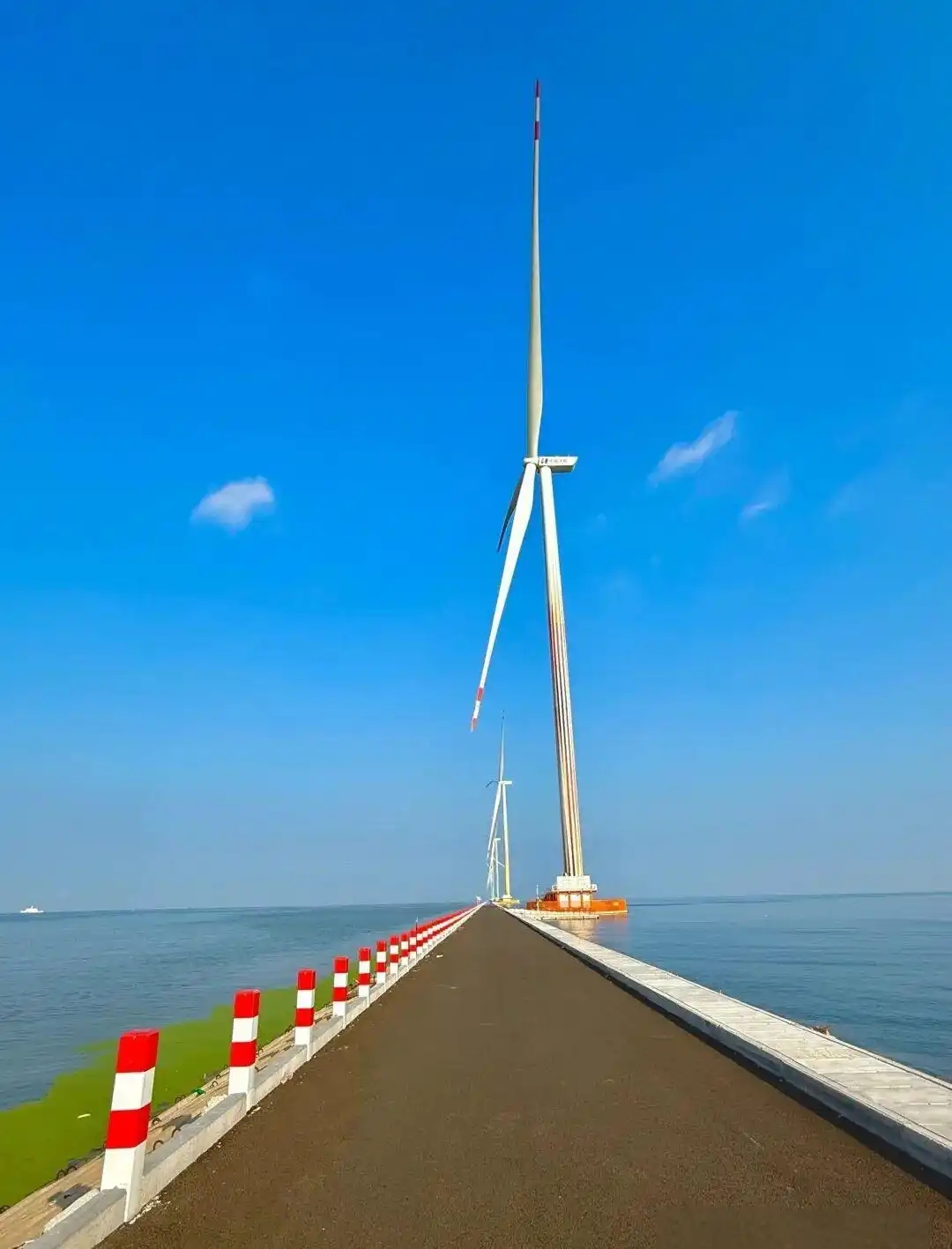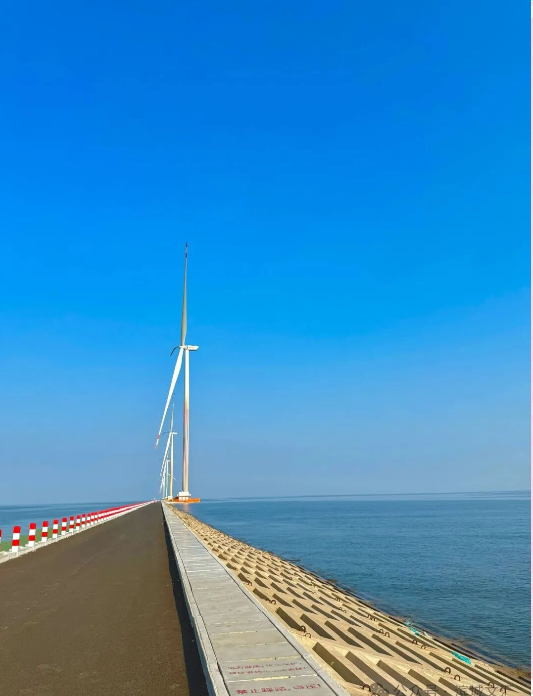 蓝天、白云、大风车,海水超清澈,阳光势下泛着翡翠绿,太出片了!