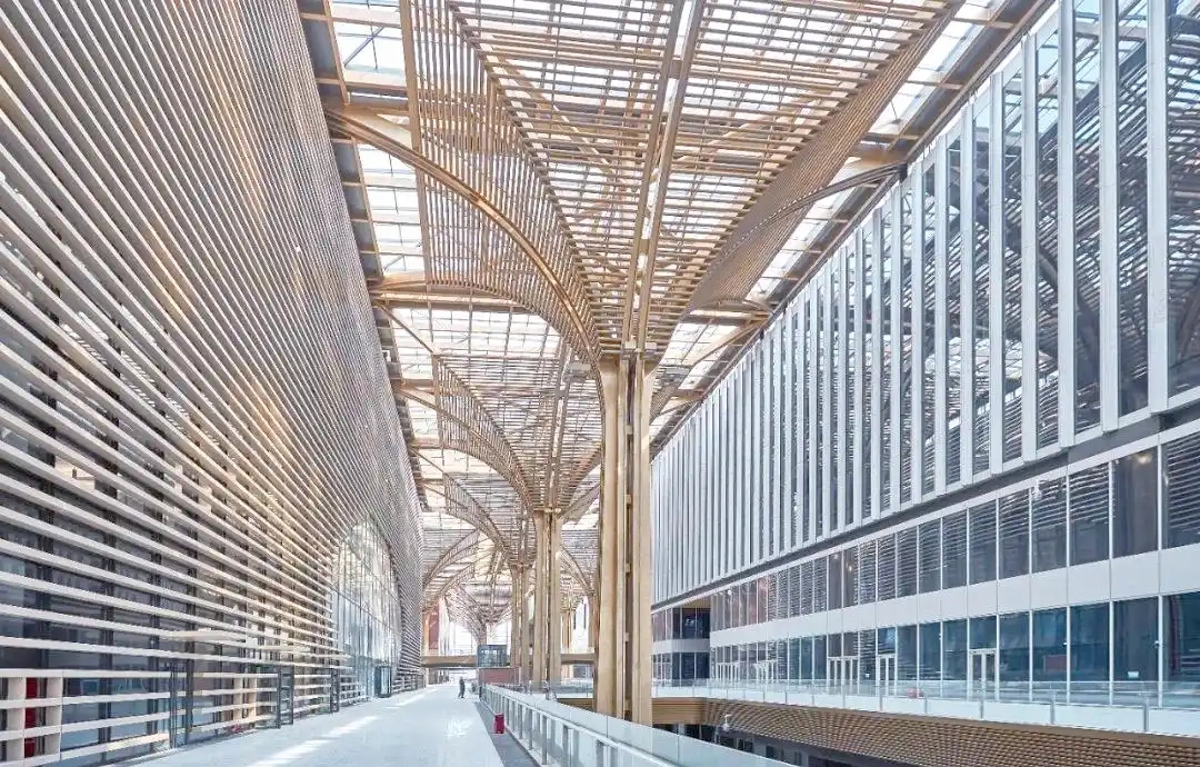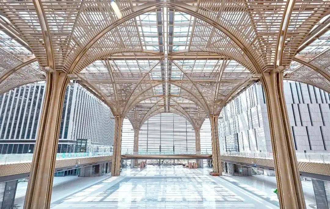 文化长廊作为连接各馆的纽带,不仅承担交通功能,更是一个全天候开放的公共艺术空间。顶部采用透光膜结构设计,白天洒下柔和的自然光,夜晚则配合灯光秀营造梦幻氛围,是拍摄人景交融画面的理想场景。