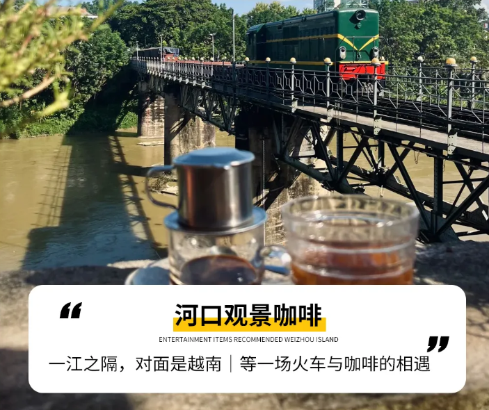 前往【河口口岸】河口是中越边境云南段较大的口岸,也是云南境内的铁路口岸,又更是滇越铁路国内的起点。在此可以【观景咖啡】,一边品尝咖啡,一边欣赏风光,放松放松。