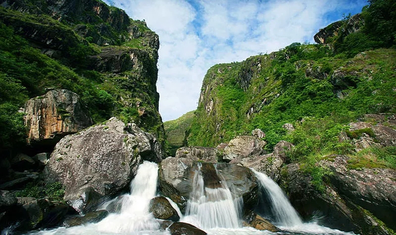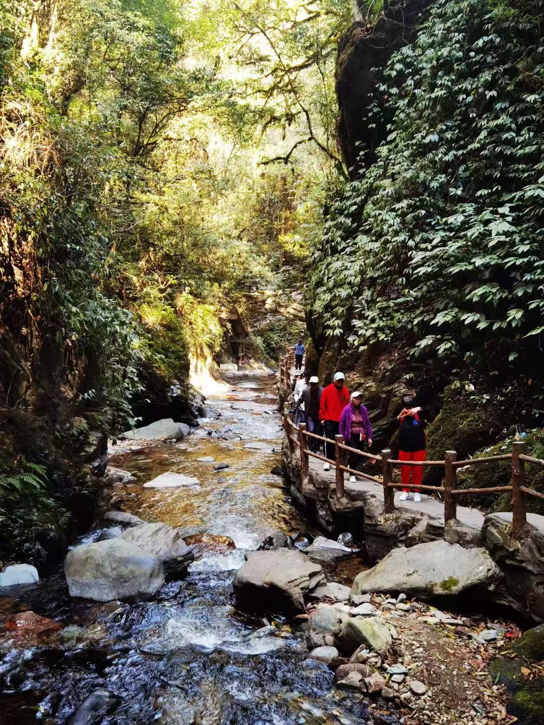 沿着溪流,从下而上追溯溪流的源头,穿石洞、过小桥、爬峭壁,看山箐两侧峭壁高耸、悬崖对峙,苍翠的群山和清澈的泉水相映成趣,让你真正融入到大自然中,感受这峻秀之美。