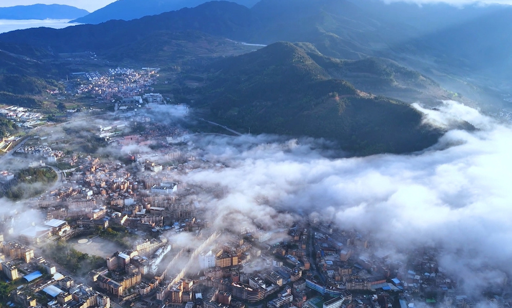 屏边苗族自治县依山傍水、凭云,步入滴水苗城庞大的牛角城门