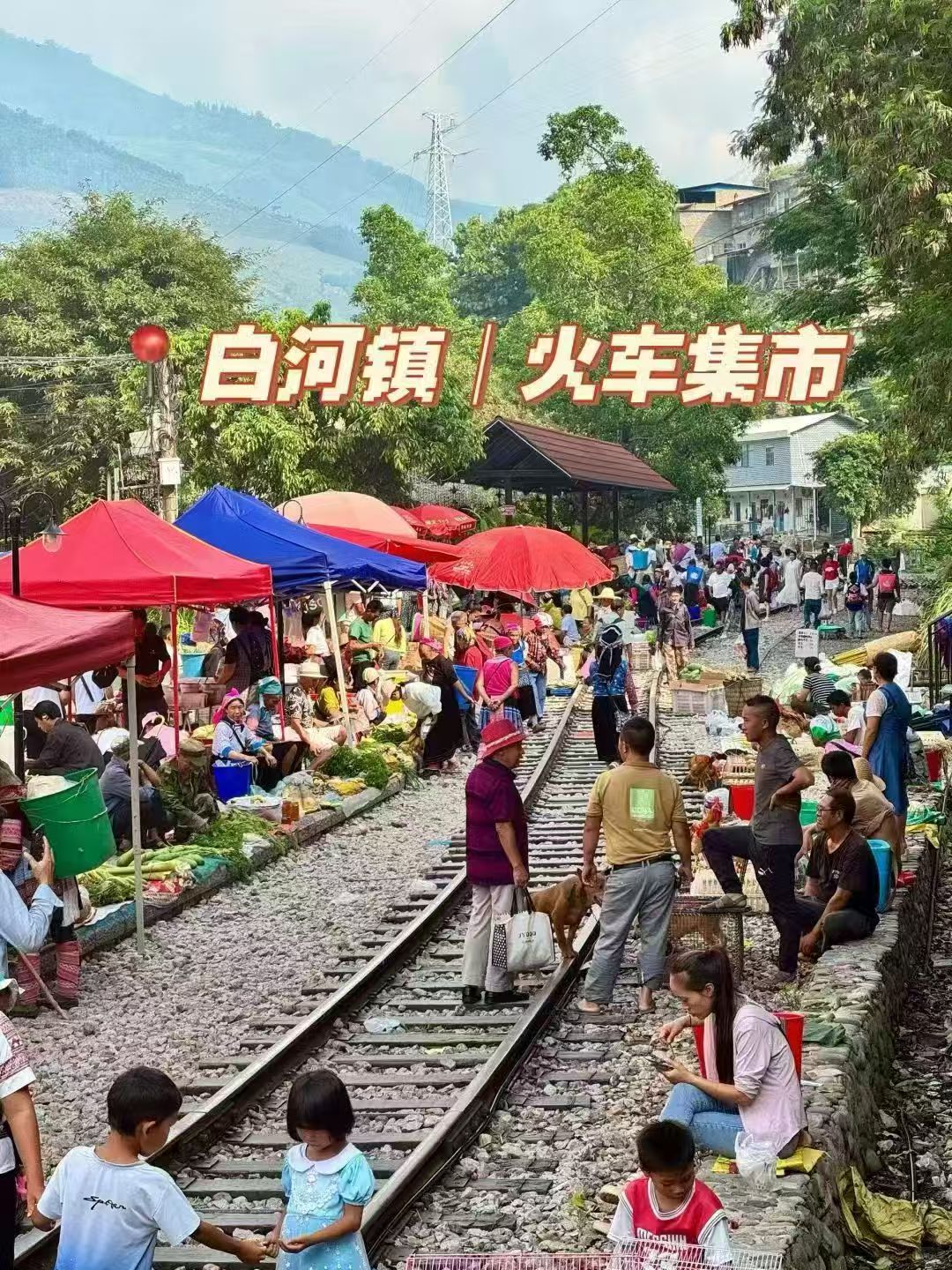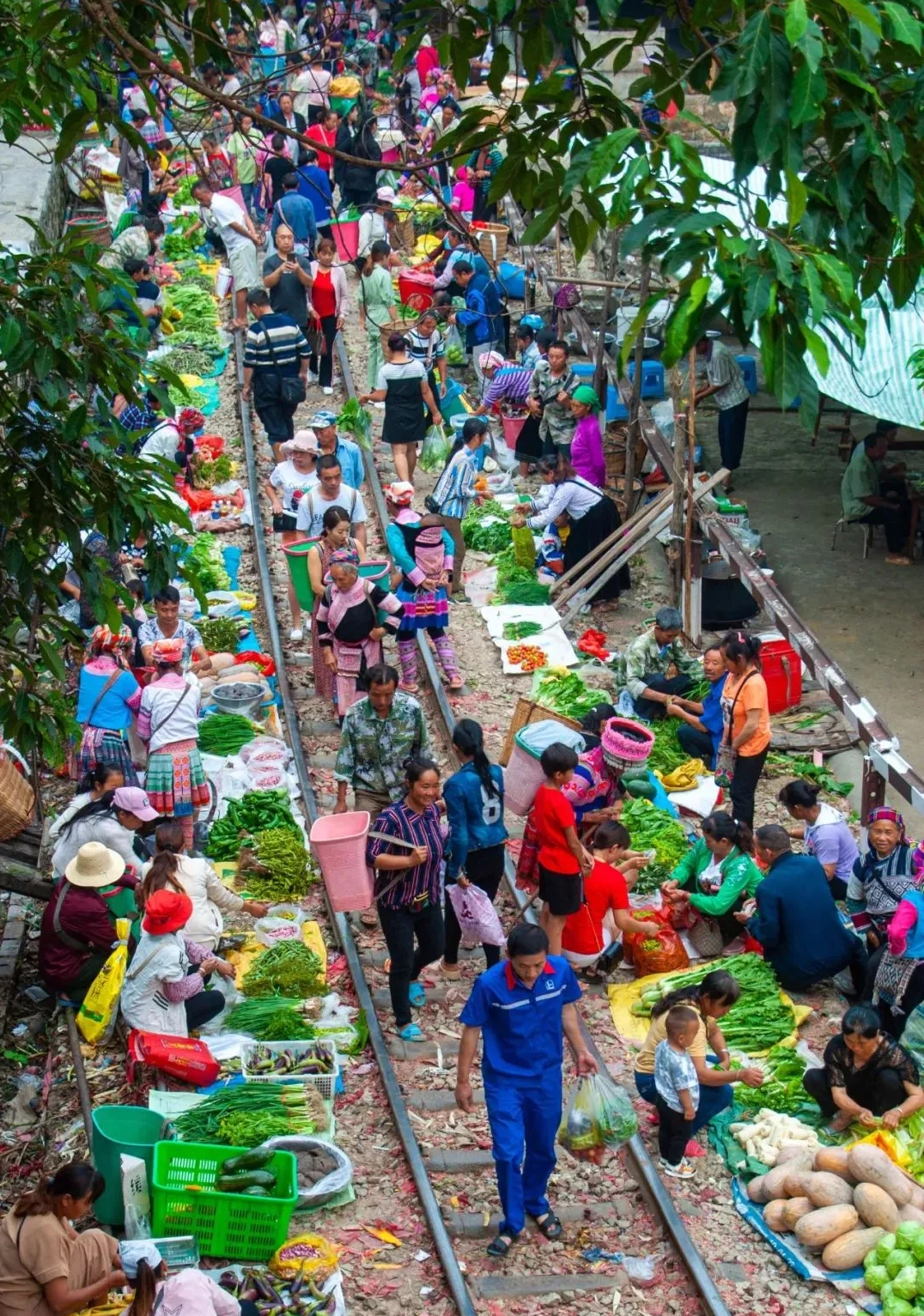 屏边早晨出发,前往素有“红河州100年历史火车集市”每周一的限定版【百年铁路集市】,这里的边陲小火车集市,依然保持了民族风情,既有民国时期影子、又有八九十年代的烟火气息,每当火车缓缓经过人满为患集市时,摊贩们会迅速收拾好摊位的东西,这种接地气的市场,没有经历过的人以为是国外,这里不是印度,不是泰国,而是真正的云南。