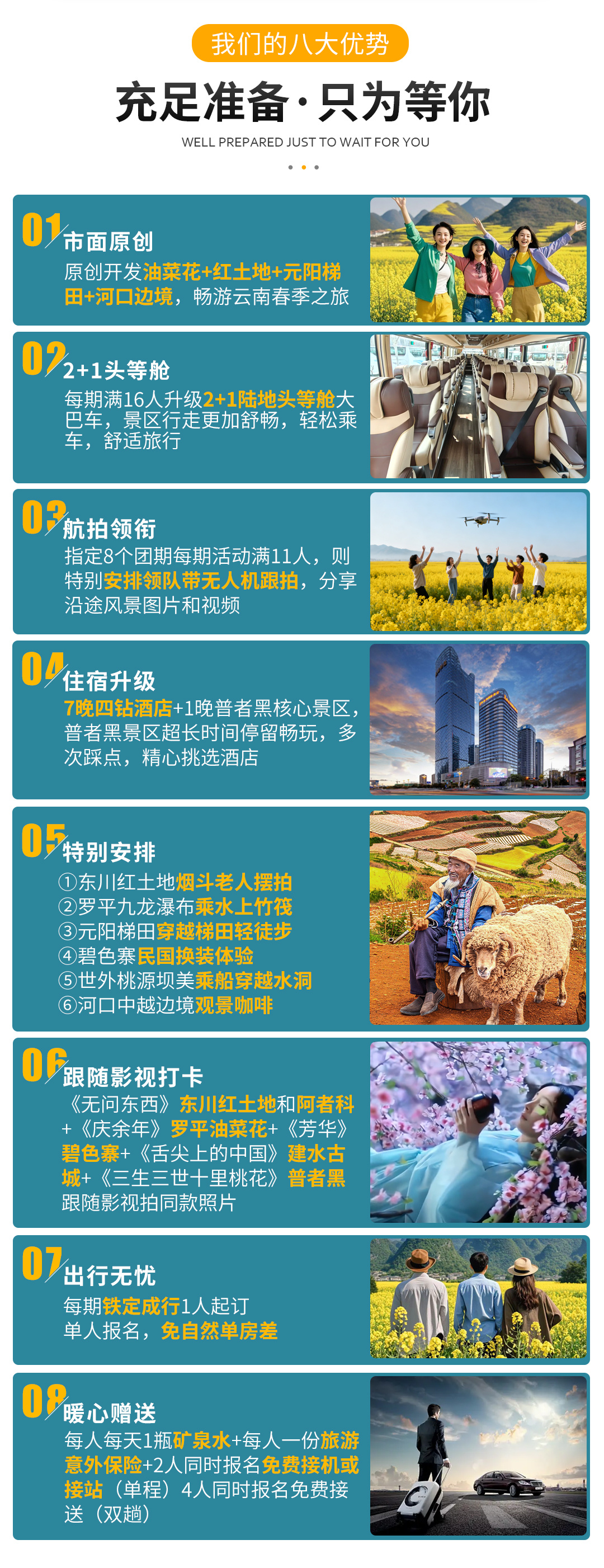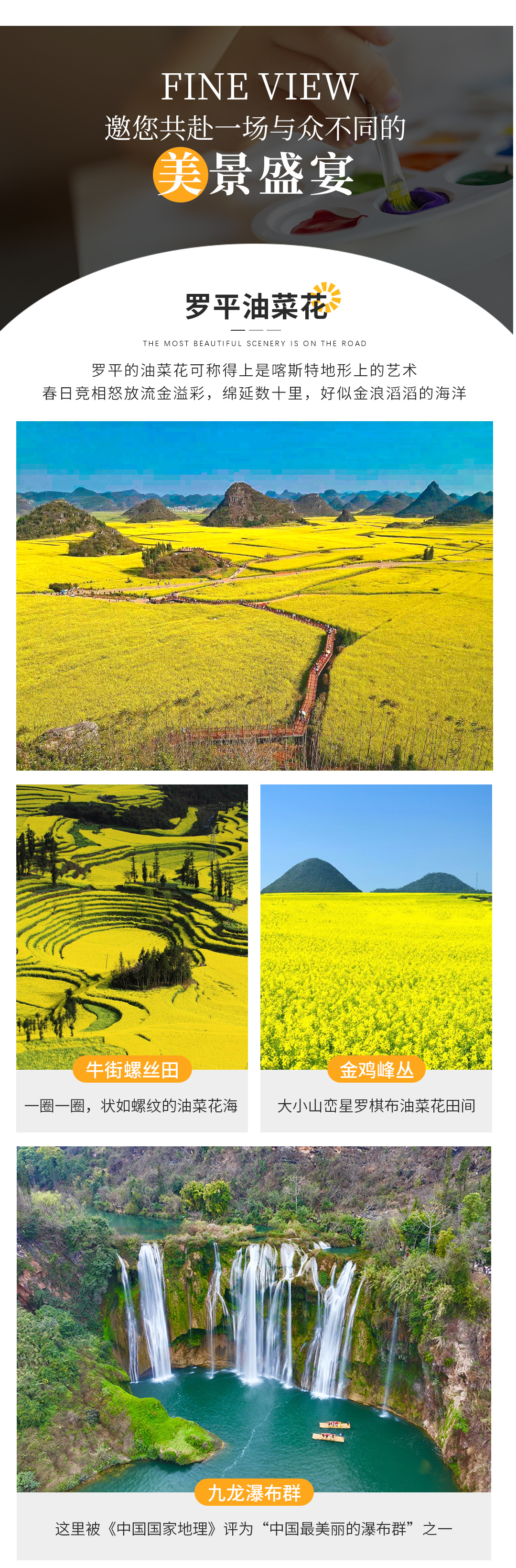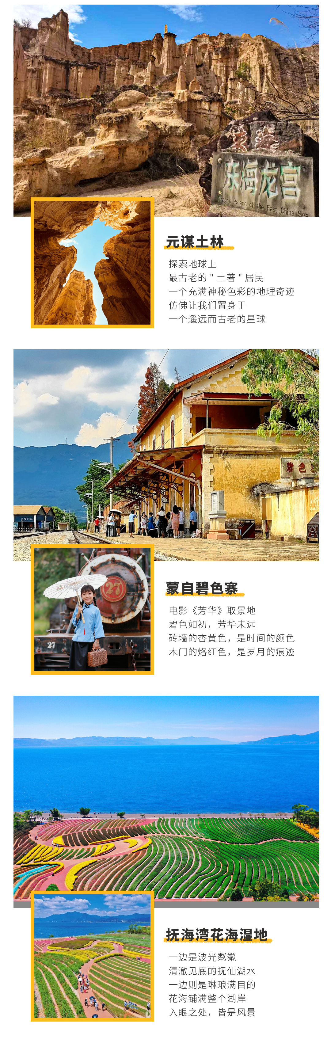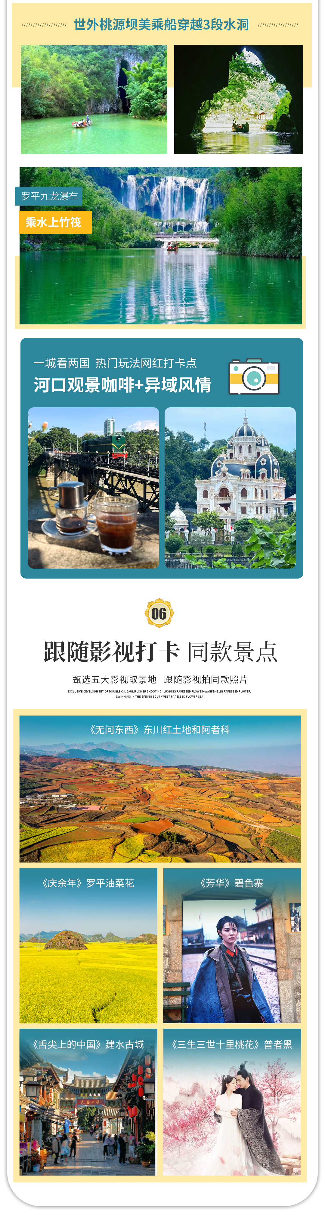 - 云南 昆明 元阳梯田- 罗平油菜花- 东川红土地- 建水古城- 弥勒东风韵- 河口边境风情- 普者黑- 世外桃源