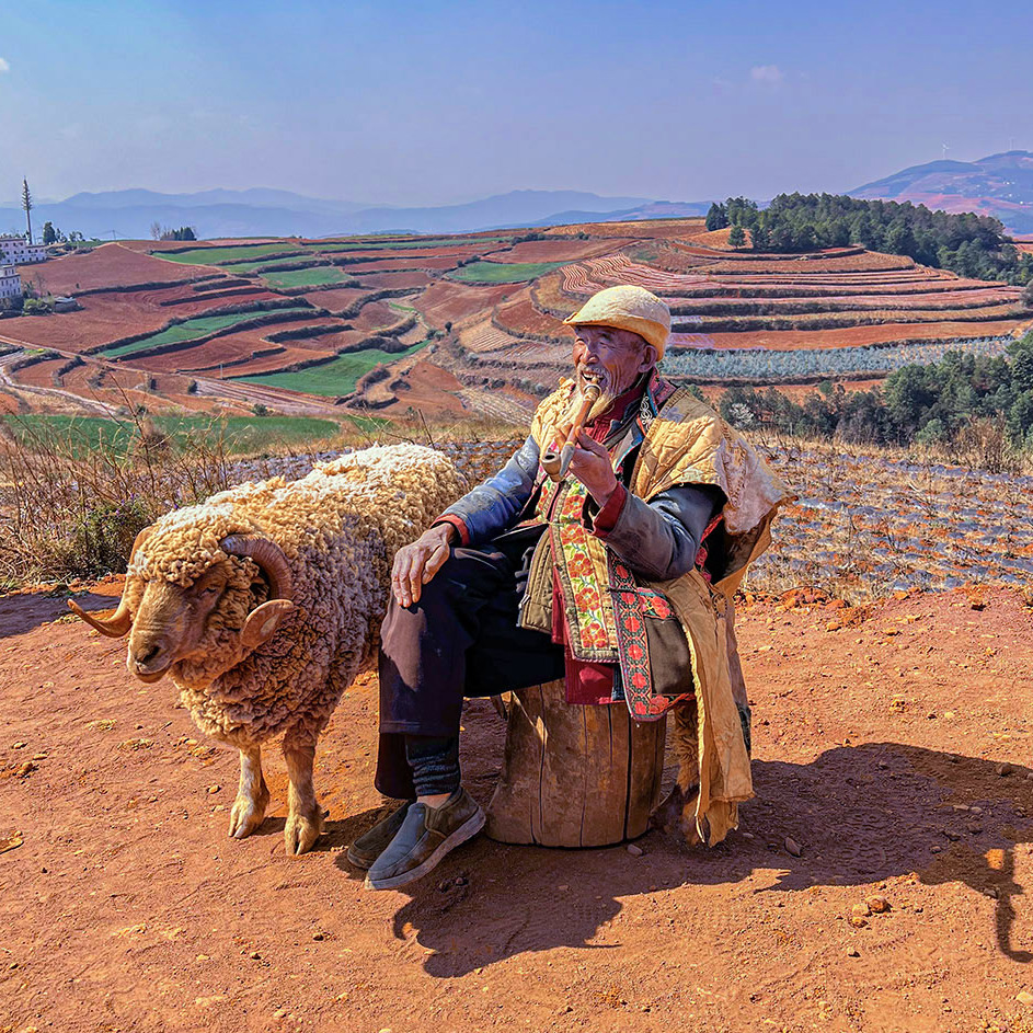 1)东川红土地烟斗老人摆拍;