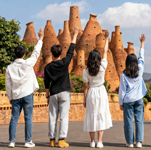 土林游玩结束后驱车前往【弥勒】,抵达弥勒我们游玩具有摩洛哥风格的【东风韵小镇】,古怪的城堡火爆网络--万花筒艺术馆,带着特有的民族风情,粗犷豪放,却又显得如此细腻,建筑外形酷似造型各异的酒瓶,红色的砖墙的艺术形态,将西方穹顶与中式瓦窑相结合,饱含了抽象的后现代主义元素。