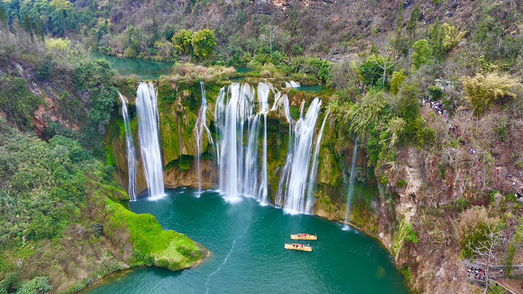 早餐后驱车前往【九龙瀑布】该瀑布是国内有名的瀑布群景观,是罗平古十景之一的“三峡悬流”所在地。九龙瀑布由于特殊的地质构造和水流的千年侵蚀,在此形成了高低宽窄不等的十个梯级,造就了形态各异气势磅礴的瀑布群。在此我们安排【电动水上竹筏体验】泛舟河上,闯入山水长卷的画中人。