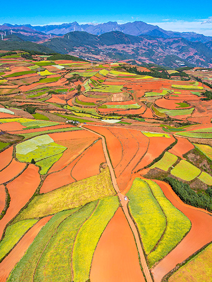 早上大堂集合出发,乘车前往【东川红土地】《无问西东》电影取景地,这里方圆近百里的区域是云南红土高原上非常集中、非常典型、非常有特色的红土地。衬以蓝天、白云和那变幻莫测的光线,构成了红土地壮观的景色。途中可拍摄【乐谱凹】等红土地风光。