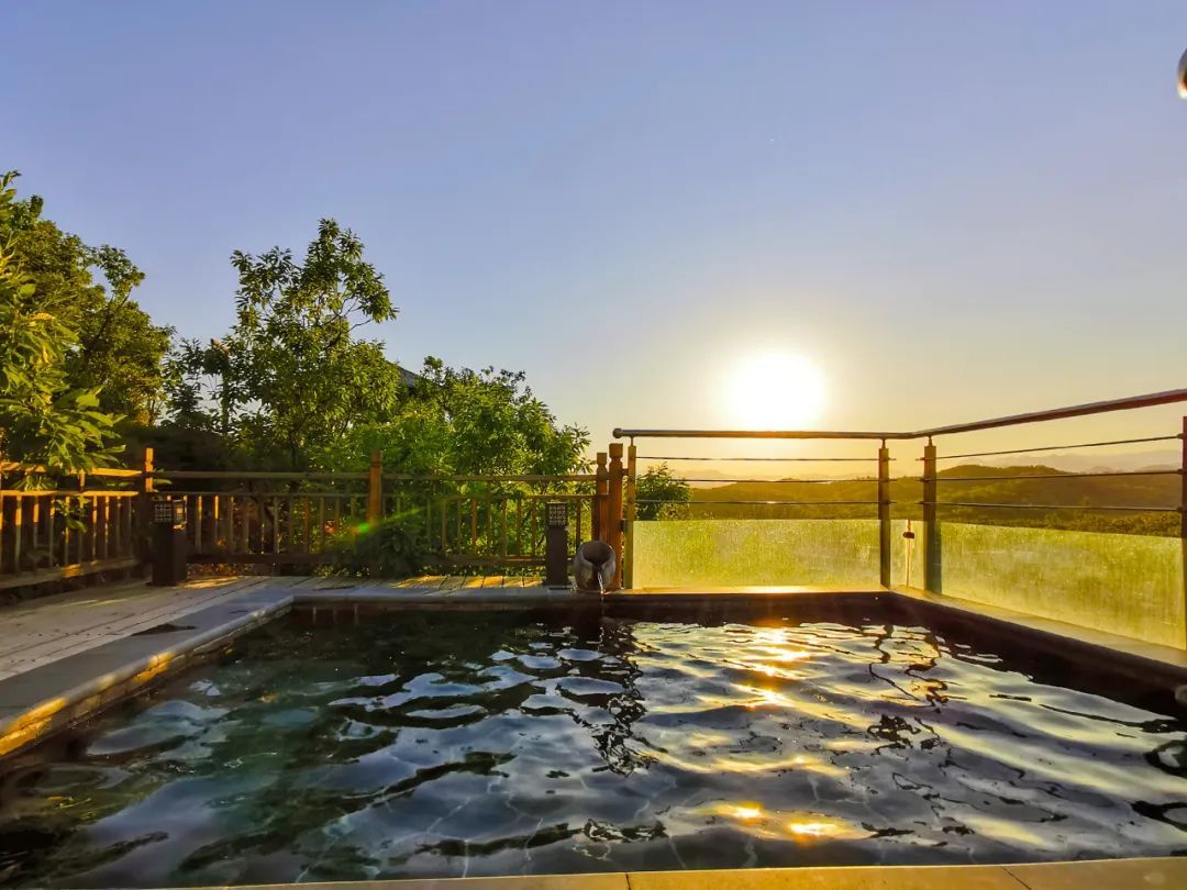 度假村内温泉水常年不绝,汤池星罗棋布错落有致,由室内汤池区、室外山体温泉区、鸟巢泡池等50余个特色泡池组成。
