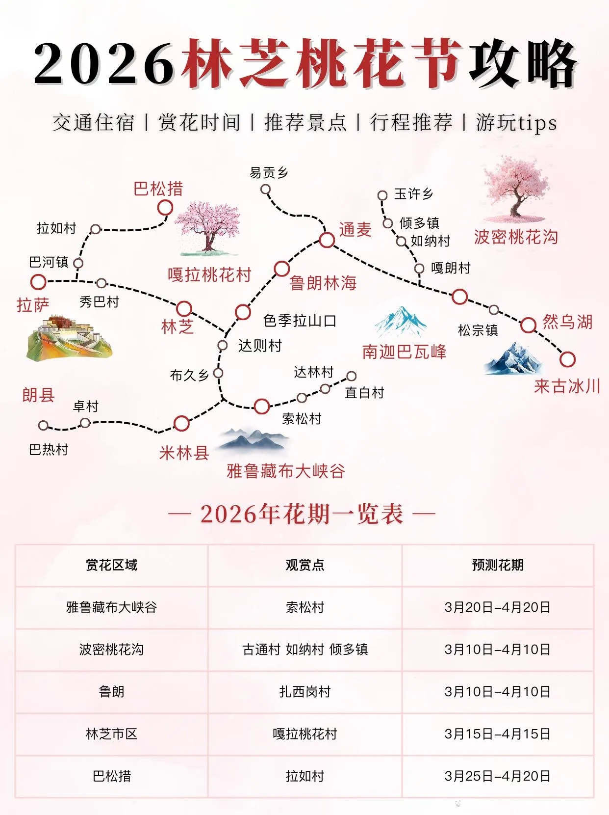 ✅ 黄金赏花期:3月20日-4月10日(此阶段桃花进入盛放期,花量最大、颜色最艳,且雪山未完全融化,“雪山+桃花”的经典组合能完美呈现,光影效果也最佳,是拍照出片的黄金时段);