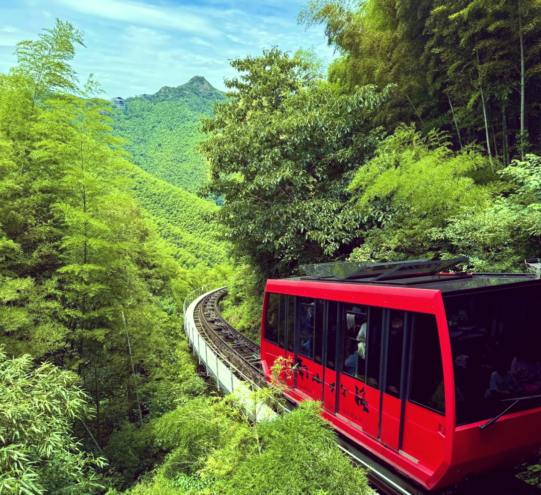 在【静湖】出发,乘竹筏感受梦幻竹海,亦可直接前往【寿星广场】。乘坐【地面缆车】到达历史文化区,游览【鸡鸣村】【竹文化园】【熊猫馆】,观舞狮表演,感受民间艺术。历史文化区游览结束乘坐【架空索道】至【吴越弟一峰】,撞钟祈福,最后乘坐架空索道返回。