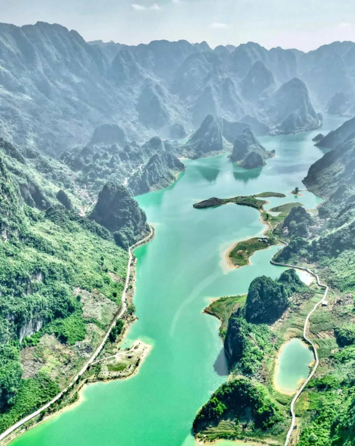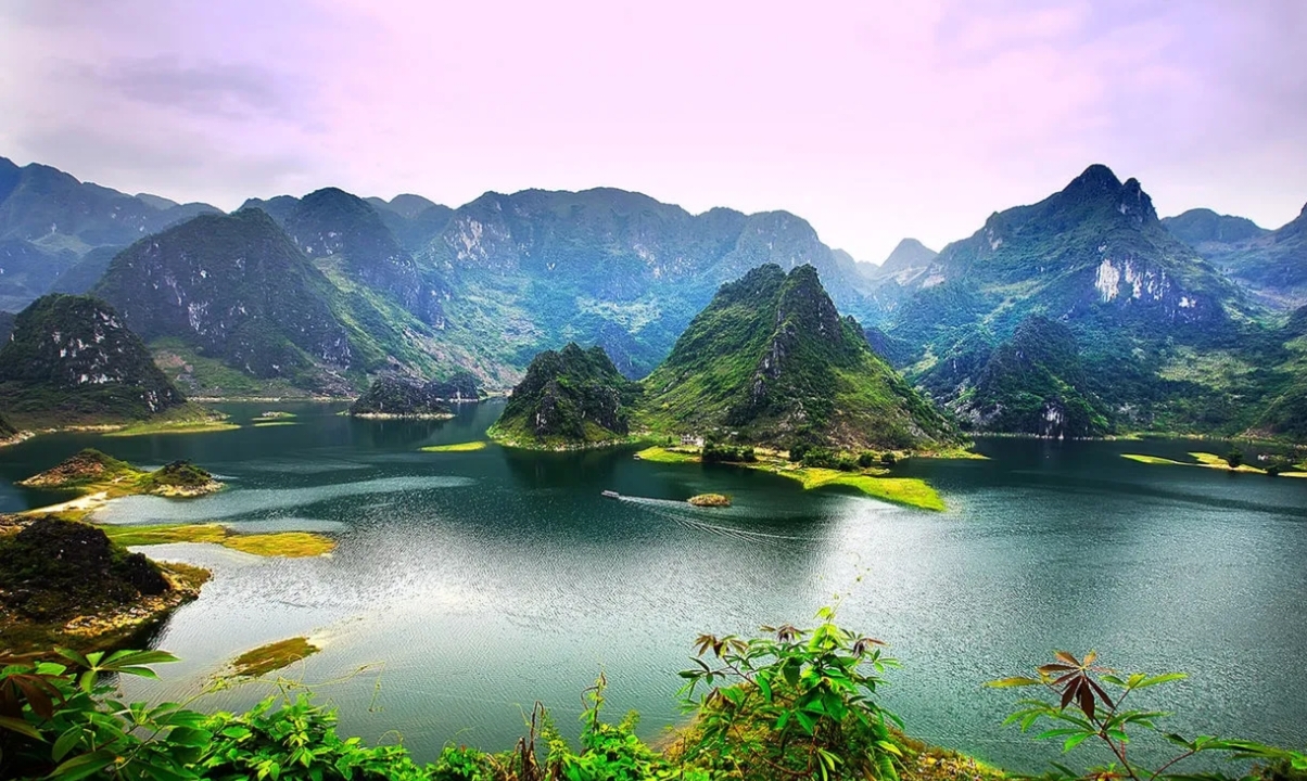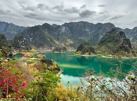 浩坤湖的美,在于它将遗世独立的山水秘境与生生不息的人文传奇完美融合。它像一块巨大的翡翠镶嵌在喀斯特峰林之中,湖水清澈如镜。