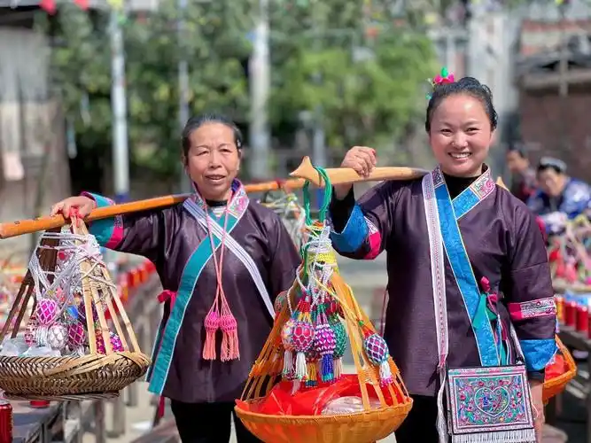 旧州古镇:以制作绣球闻名的旧州古镇因为保留着包括扎染、木雕、舞狮道具、山歌、泥彩等在内的传统文化,被称为“壮族活的博物馆”,现在全镇人都会制作绣球。旧州能追溯到一千多年前的宋代,