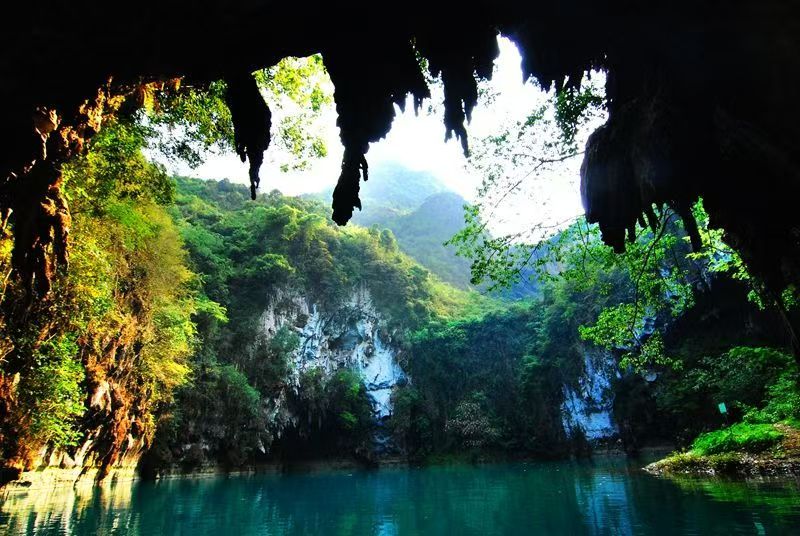 天窗群奇观:景区以七个串珠式天窗群闻名,排列如北斗七星,游客可乘船穿梭三个天窗,体验“山中有海、海上有门”的奇妙,欣赏地下溶洞、天坑、地下河等景观,感受大自然鬼斧神工。