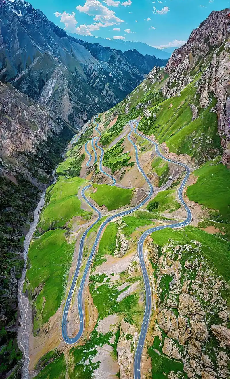 这条公路连接独山子和库车,全长约561公里,被誉为“中国最美公路之一”。独库公路穿越天山,沿途风景变化多样,一天之内可以感受到春夏秋冬的四季变幻。