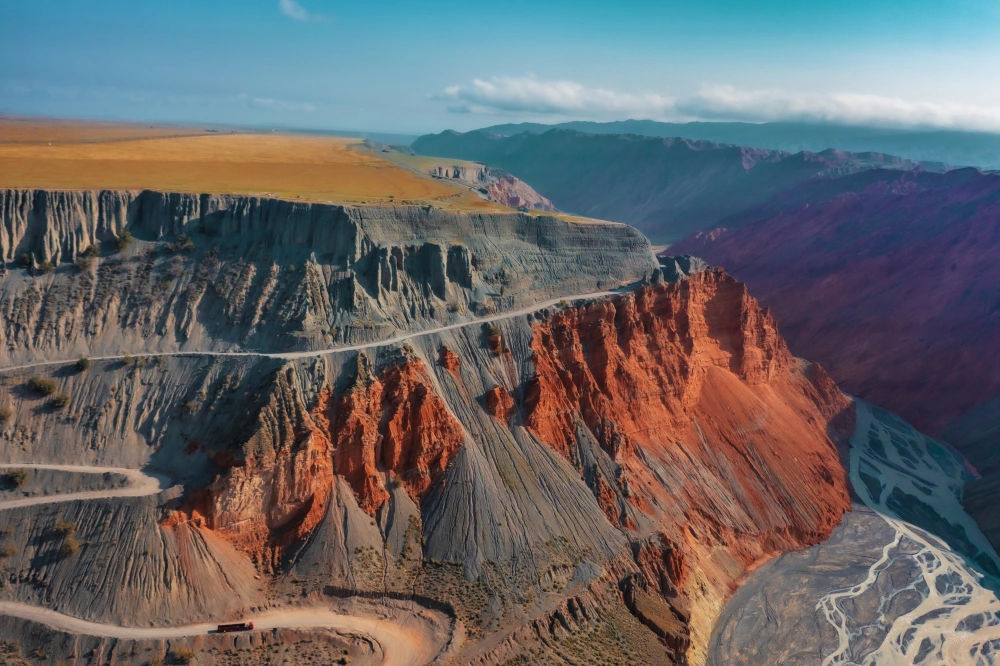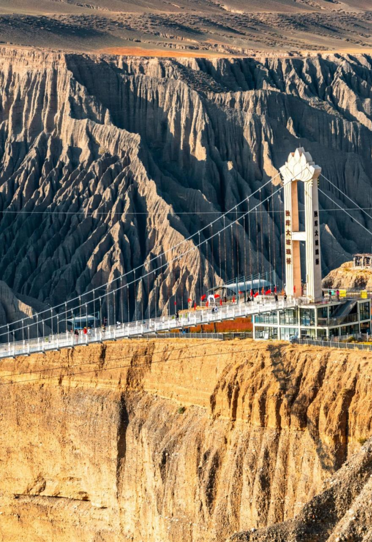 独库公路的起点是独山子大峡谷,这里的峡谷深邃,岩壁陡峭,仿佛大自然的鬼斧神工。站在峡谷边缘,俯瞰谷底的河流,你会感受到大自然的震撼。