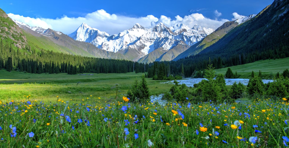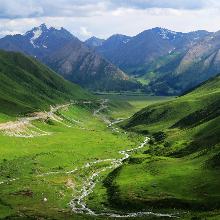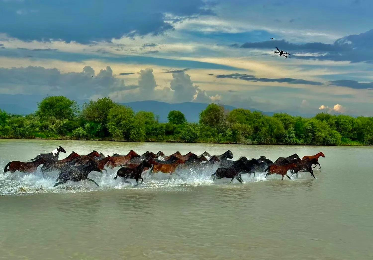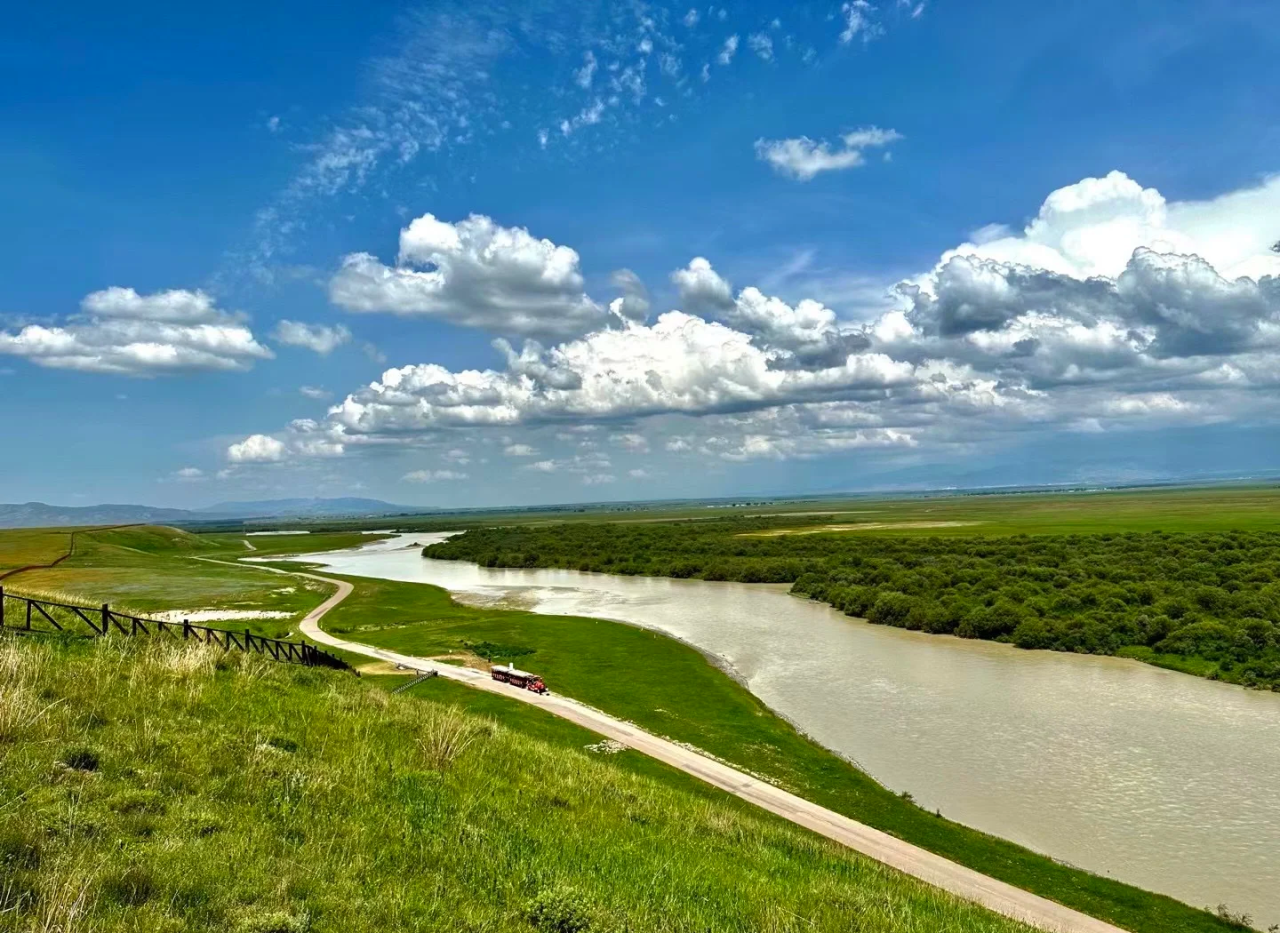 隐藏在天山脚下的昭苏湿地,是伊犁河谷中最迷人的生态秘境。夏季,绿意盎然的草甸延伸至雪山脚下,蜿蜒的河流如银色丝带般穿梭其间。成群的昭苏天马在草原上奔腾踏浪,哈萨克牧民的毡房点缀其间,仿佛一幅流动的油画。
