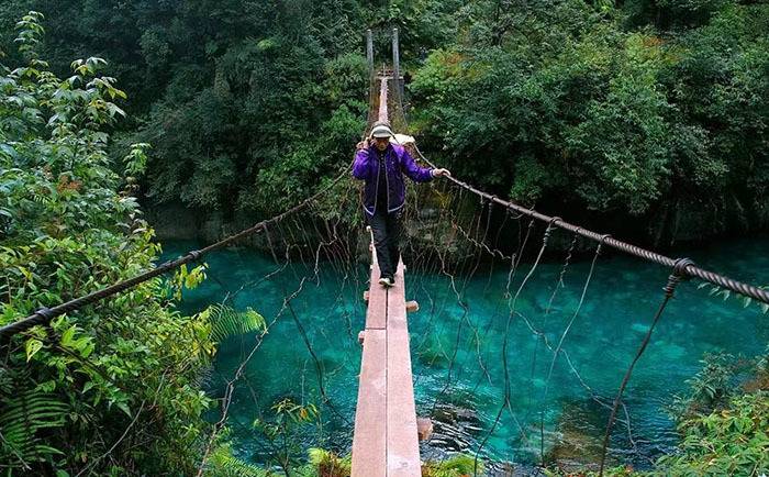 早餐后前往【普卡旺风光】游览拍摄,云雾缭绕的普卡旺、清澈见底的独龙江水和具有民族特色的小木屋好似一幅美丽的山水画卷,穿过吊桥来到对岸被誉为“植物博物馆”的高黎贡山核心保护区。