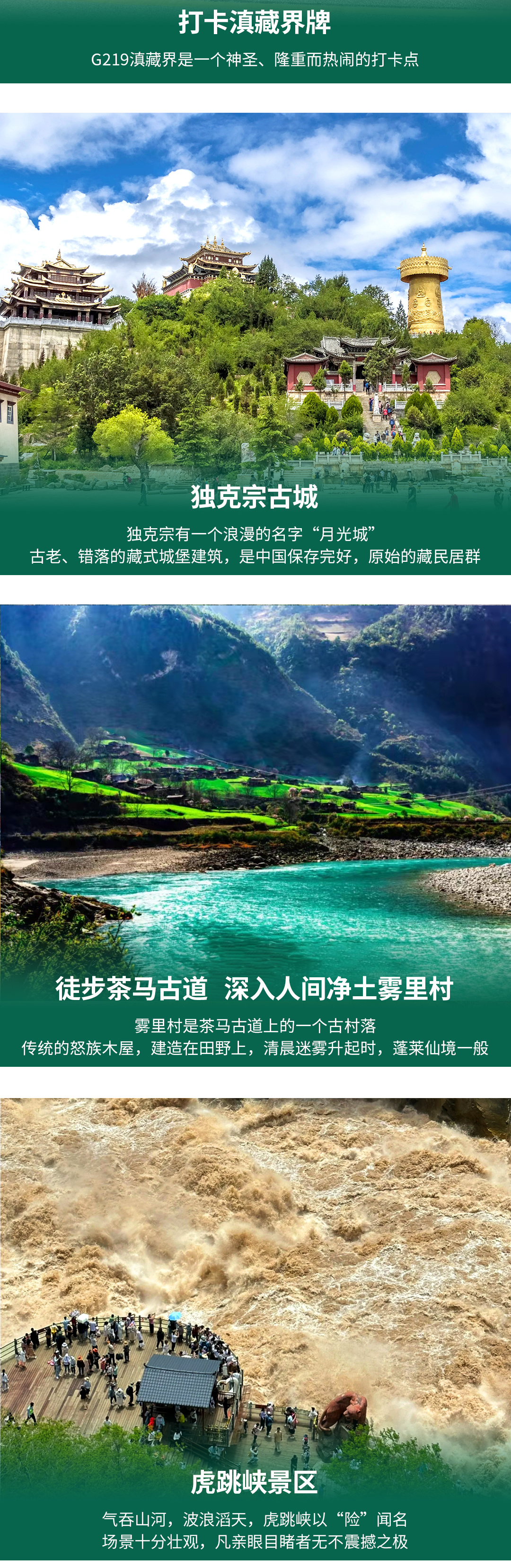 3.如独龙江天气或者政策性原因不能进入,则独龙江更改为:“香格里拉-普达措-中虎跳观景台-哈巴雪山观景台”
