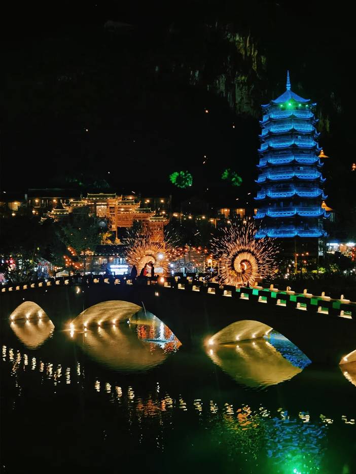 九龙瀑布游玩结束,我们前往【峰林布依】该景区灯光璀璨,吸引游客前来赏夜景、观民俗活动(布依婚俗巡演+民俗歌舞表演+非遗打铁花+篝火晚会),乐享悠闲时光。