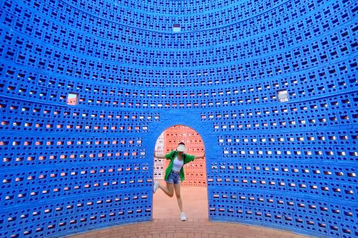 爱春梯田游玩结束后我们驱车前往【建水】,首先抵达【蚁工坊】,蚁工坊是一座用空心砖建造的大迷宫。走在里面,有一种时空穿越的感觉,十分吸引人,随手一拍的照片,都充满了大胆前卫的艺术感。