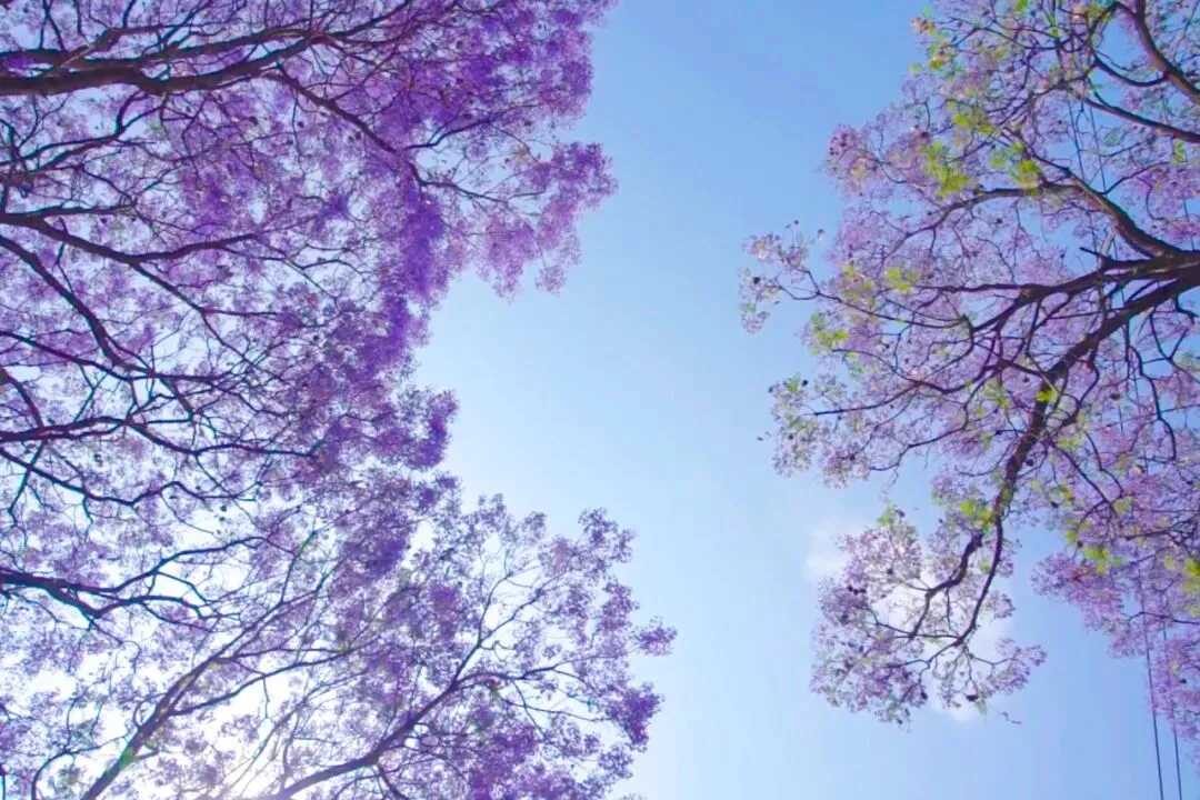 适合航拍,可以捕捉到绿色与紫色的鲜明对比,或者拍摄紧凑的蓝花楹街道;也是拍摄蓝花楹的热门地点。
