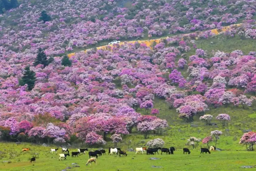 紫色的蓝花楹,粉色的索玛花,共同构成了大凉山最靓丽的春日风景线。一片湖、一山泉、一牧场、一电站、一古城、一块田、一渡口、一寨子、构成了大凉山美丽丰富的春日旅程。
