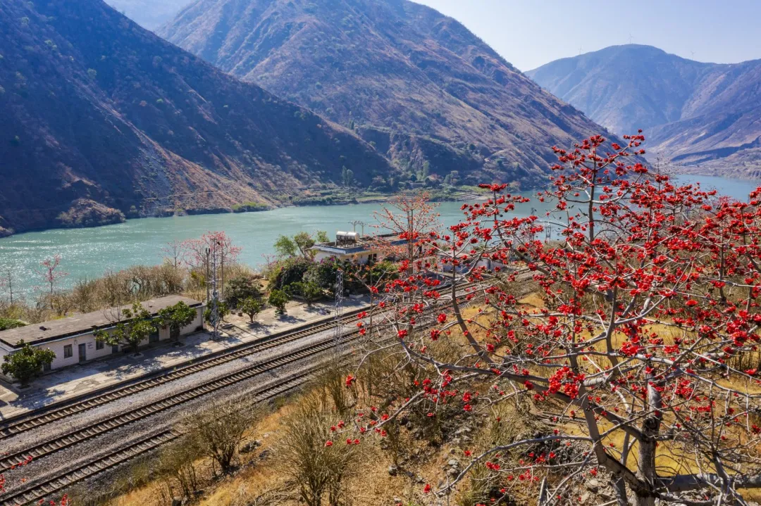 走进拉鲊站,只见斑驳的轨道、时代标语、老站台,这些元素串联起来,总能勾起儿时曾经乘坐绿皮火车的回忆。站内,杏黄色的警务室、候车棚内的东寨站标识,剧中的一幕幕场景出现在实景中,现实与艺术于此刻交织在一起,使人难以分辨。沿着铁路徒步前行,听不到车来车往,看不见高楼大厦,只有锈蚀铁轨、空灵鸟鸣。废弃的铁道,是铁道迷和徒步爱好者的绝佳好去处,每逢春天,铁道旁还可远眺清澈的金沙江水和灿若云霞的攀枝花树,令人心驰神往。