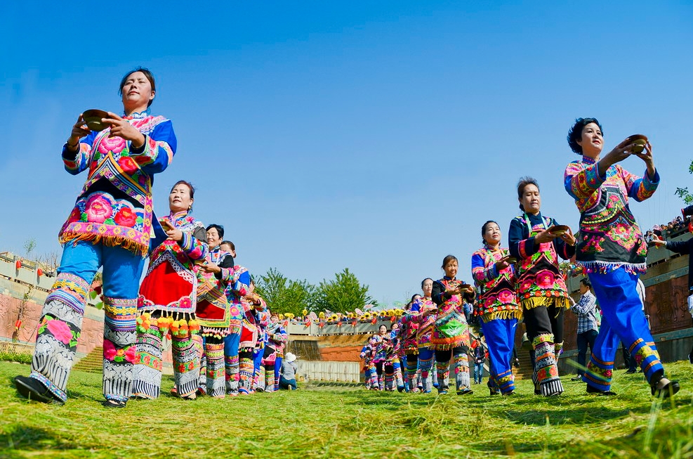 暮春的日史博肯,上万亩索玛花如约盛开。漫山遍野的花朵在蓝天下热烈绽放,巧笑巧行的彝家女子行至花海间,抬头是蓝天白云,低头是连绵花海,勾勒出一幅纯美的彝风彝韵画卷!