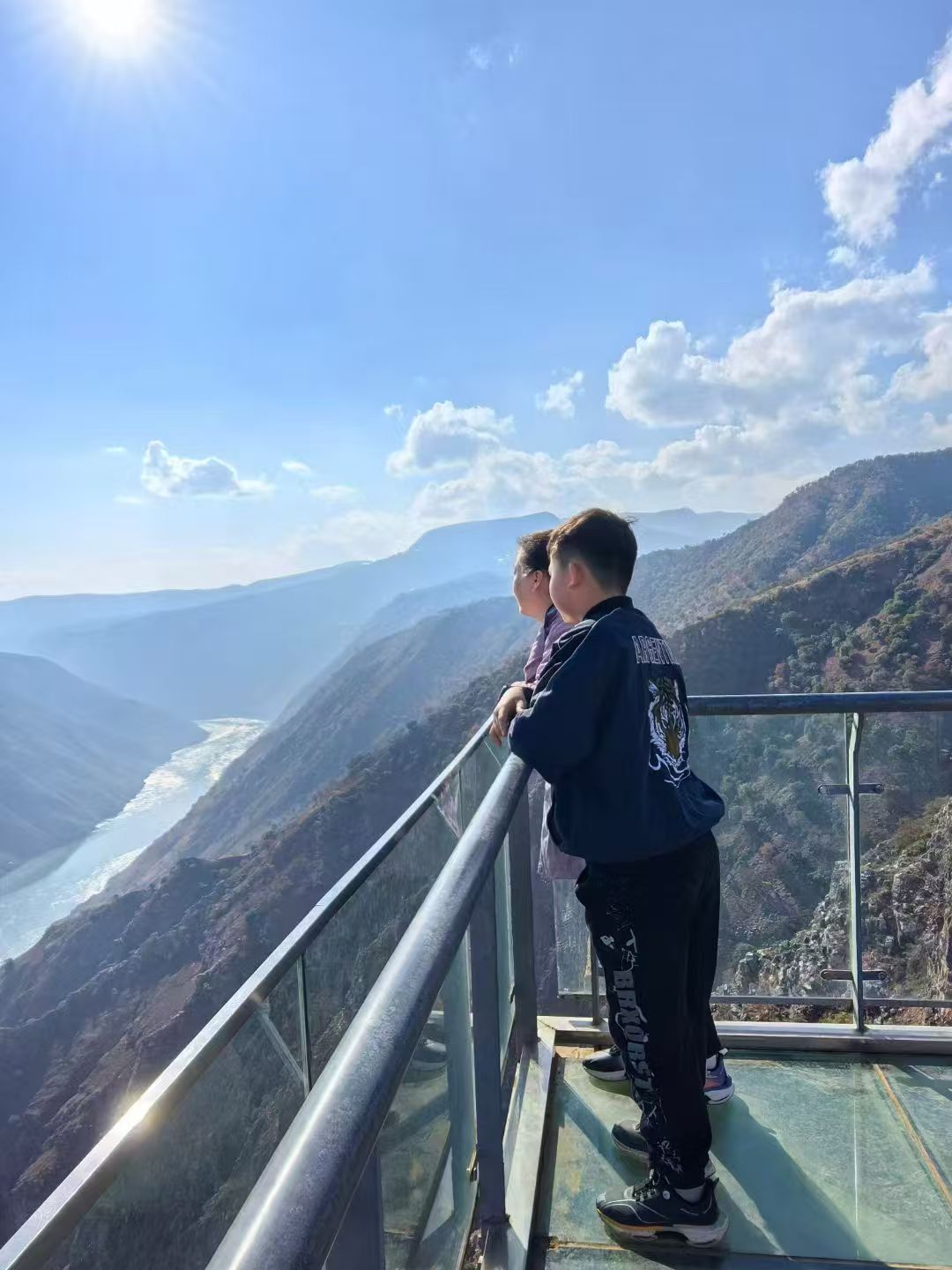 在村里换乘小摆渡车,到金沙江大峡谷观景台,一睹江水涛涛,烟波浩渺,气势如虹。