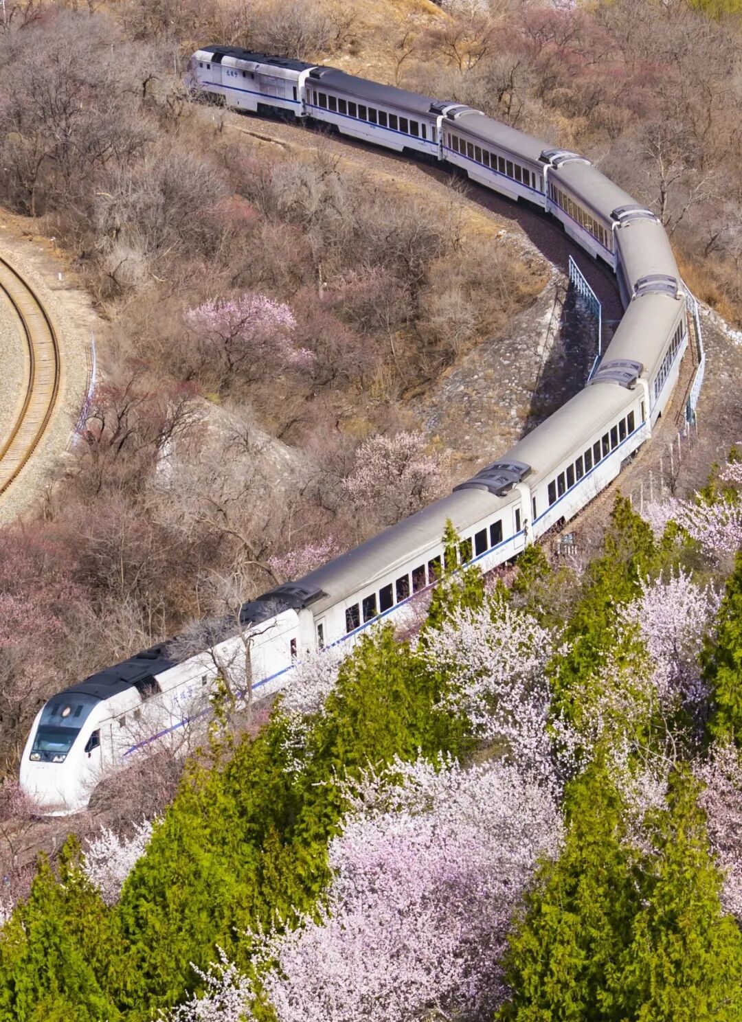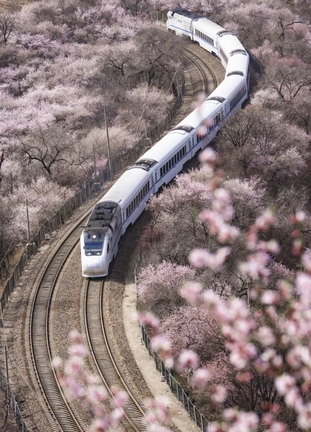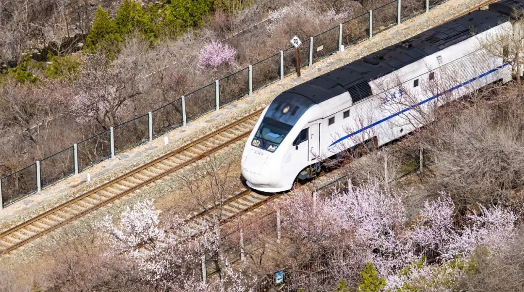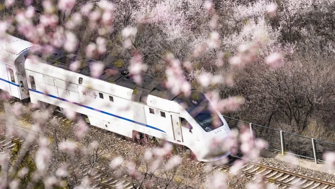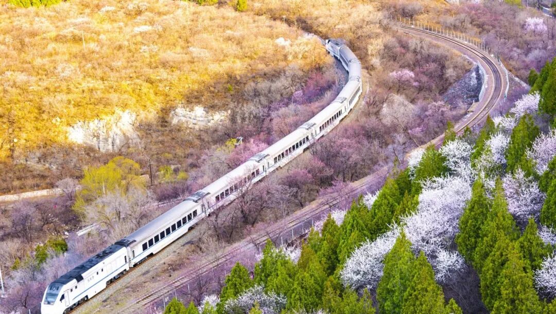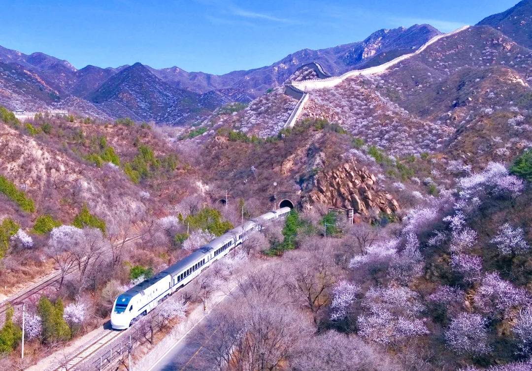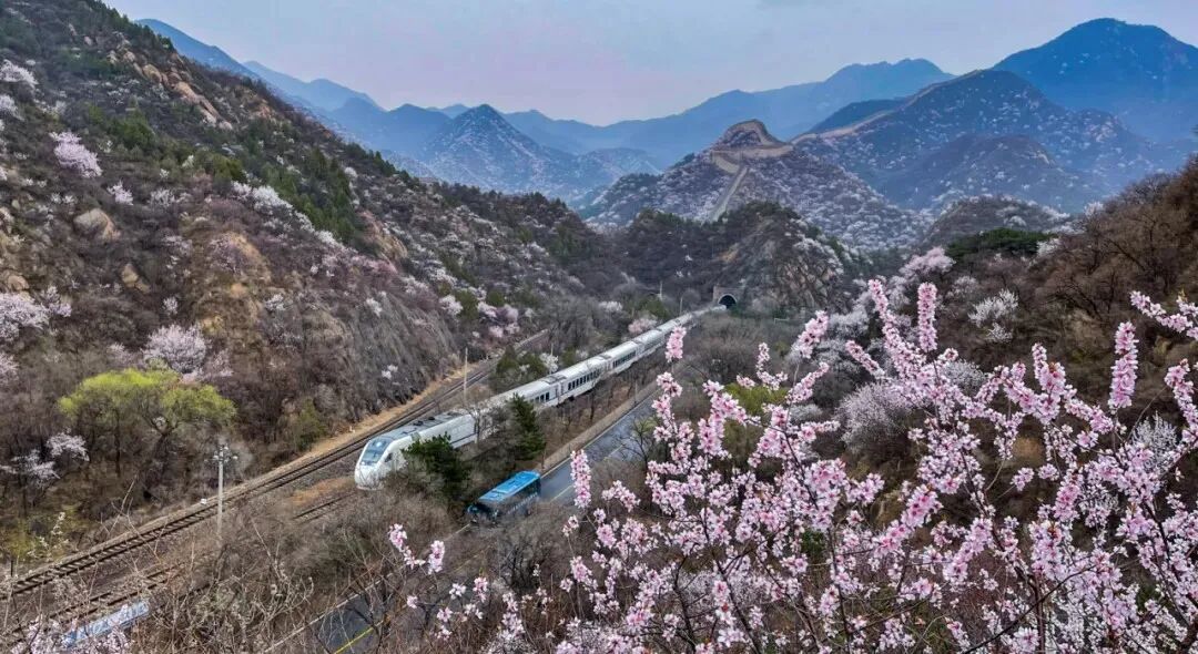 素有“天下第一雄关”之称的居庸关长城脚下山桃花、山杏花片片盛放,居庸叠翠与漫山繁花交相辉映、古色古香。花海中穿梭的列车婉若游龙,成了春天绝佳的拍照景点。