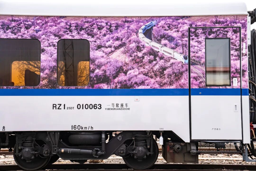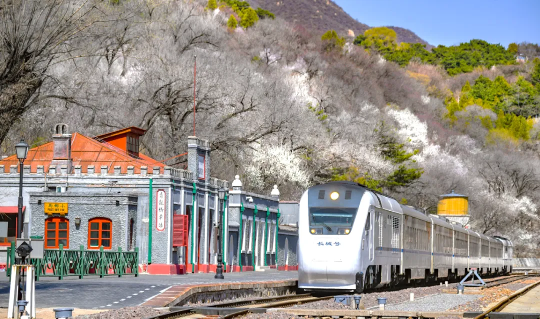 除了赏花,列车行驶在百年京张铁路上,在1908年建成的青龙桥老站,亲身感受“人”字形铁路的巧妙设计——列车在此需要车头变车尾,转向爬坡。去年列车还重新涂装,蓝白配色配上花海图案,颜值更高了。