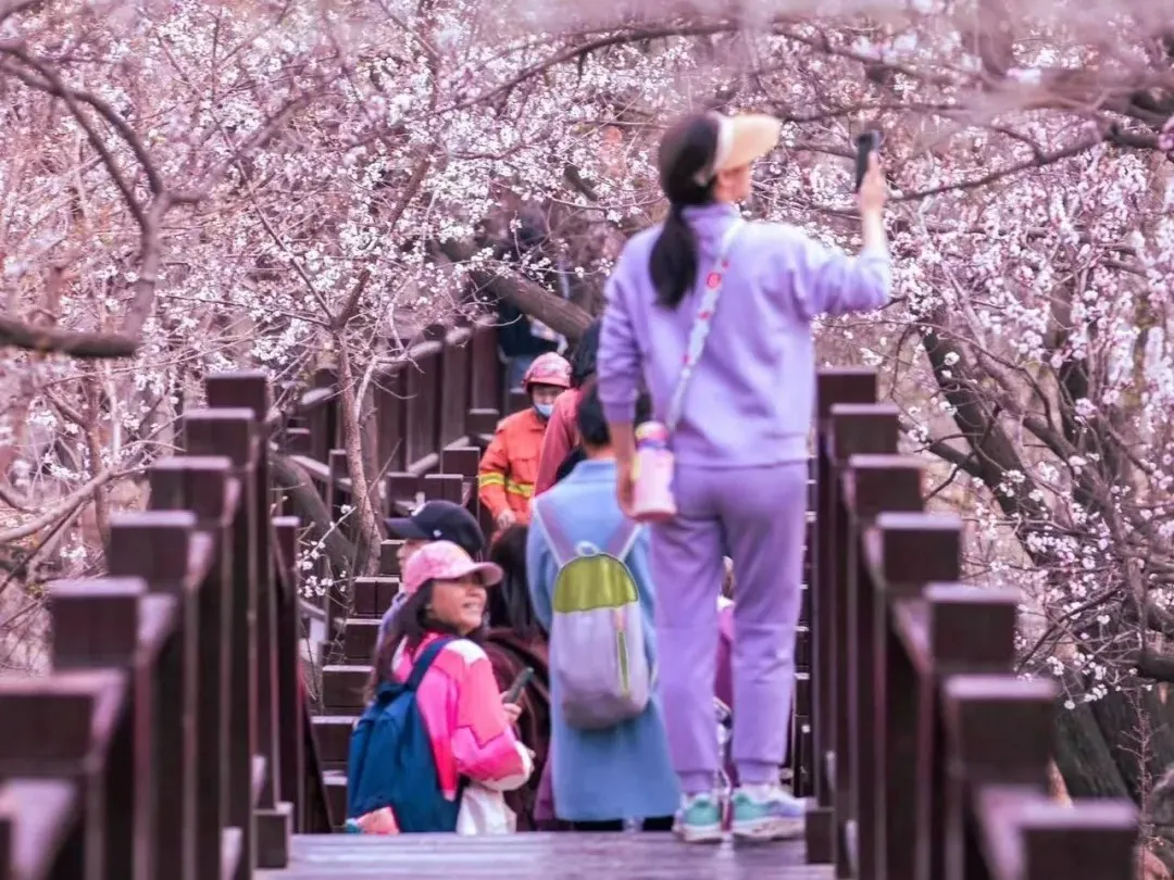 春风吹醒山谷S2线列车正穿越粉白的花海,当列车穿行在居庸关附近时,铁路两侧漫山山桃花、杏花盛开,正如开往春天的列车。登上花海栈道捕捉美好的瞬间,和巍巍长城组合美丽的油画。上脚下的市集热闹非凡,春天带着新鲜的泥土味道混着花香向我们驶来。