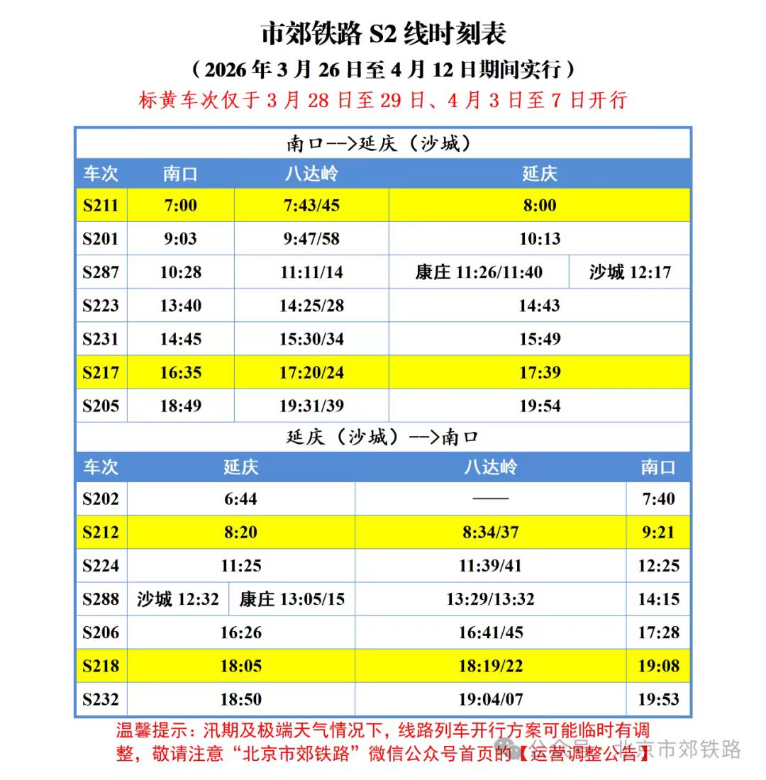 终到延庆站和沙城站